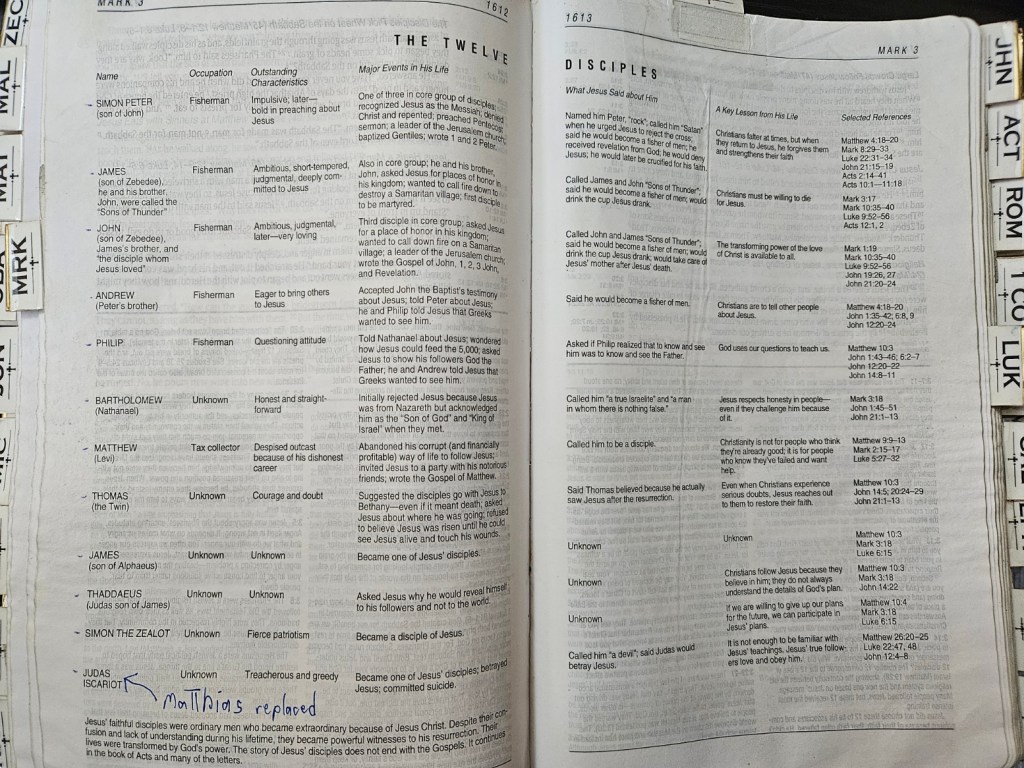 I’m going to post a couple of photos from my study Bible regarding the book of Mark and Jesus’ original twelve disciples. I pray you have a blessed day on this Monday in February 2024. Peace in Christ.